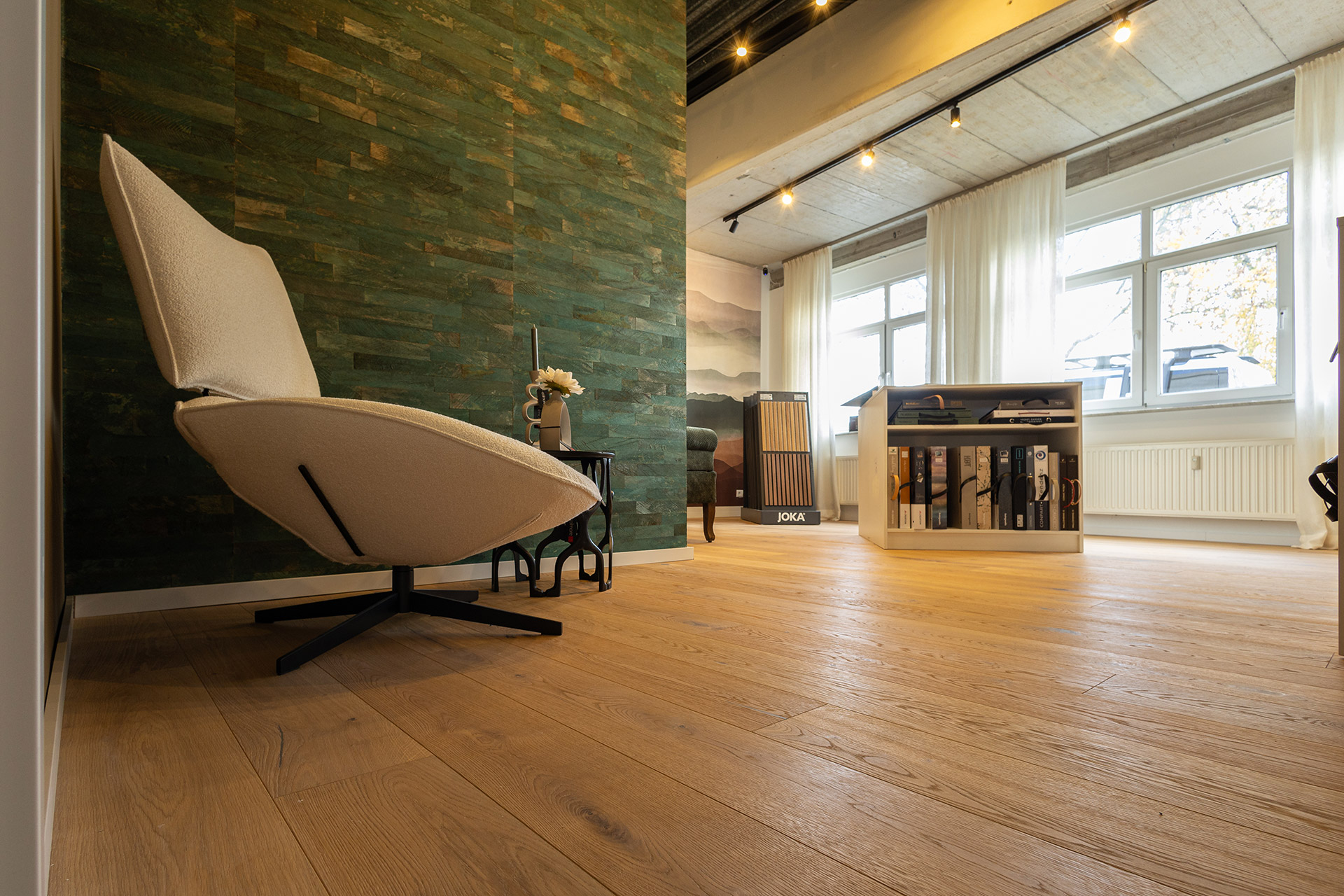 Mit unserem neuen Showroom haben wir einen Ort geschaffen, an dem Wohnen wieder spürbar wird. Entdecken Sie moderne Bodenbeläge, kreative Wandgestaltungen und Materialien, die nicht nur ästhetisch begeistern, sondern auch zu einem gesunden Raumklima beitragen. Lassen Sie sich inspirieren – live, zum Anfassen und mit individueller Beratung.